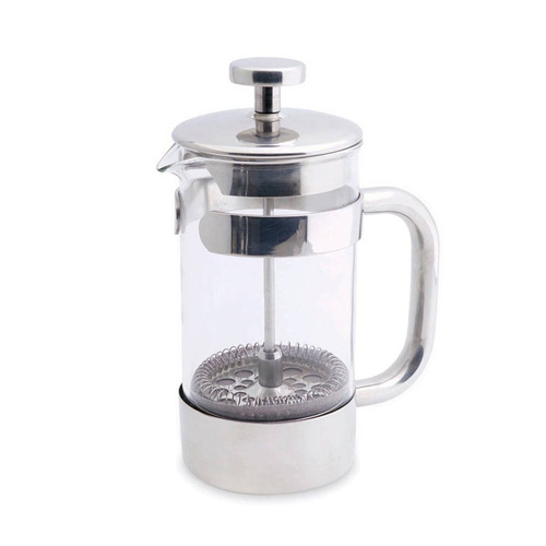 Solid coffee maker made of glass and stainless steel hardware. You can prepare your favourite coffee or tea in a fast and easy procedure. Once you put properly grind coffee beans or tea leaves in the jar you need to wait until it infuses and press the strainer down to separate the liquid from the grounds.