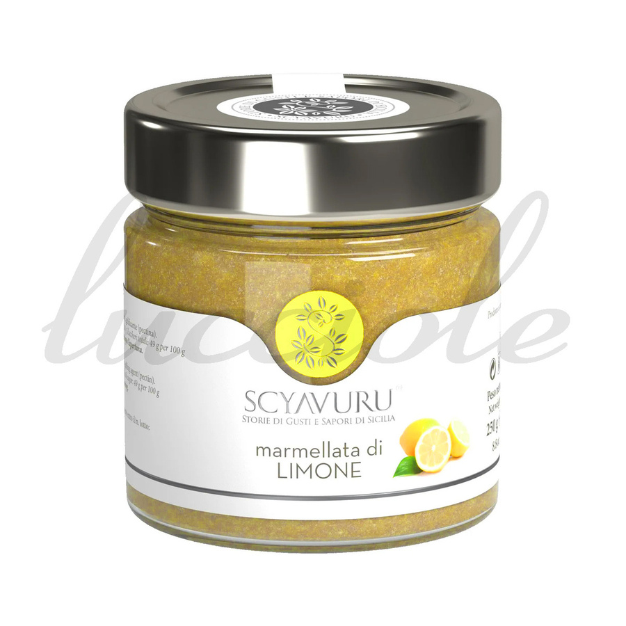 'Marmellata di Limone` to doskonałe konfitury pochodzące od renomowanego producenta Scyavuru na Sycylii. Kunszt rzemieślników oraz doskonałe owoce z przepełnionej letnim słońcem wyspy to gwarancja wybornego efektu. Konfitura cytrynwa z subtelną skórkową goryczką o niezbyt gęstej konsystencji - wydaje się, że wręcz przepełniona jest świeżo wyciśniętym sokiem. W sam raz do włoskich rogalików Cornetti, francuskich naleśników, tostów, bułeczek Brioche, czy Croissantów. Uzależniająca jakość, nieodzowny element typowego włoskiego śniadania. Polecamy również jako dodatek do serwowanej herbaty we francuskim stylu. A jeśli zwrócisz uwagę na przepiękną stylistykę opakowania, z pewnością zapragniesz wręczyć ją na prezent bliskiej osobie.