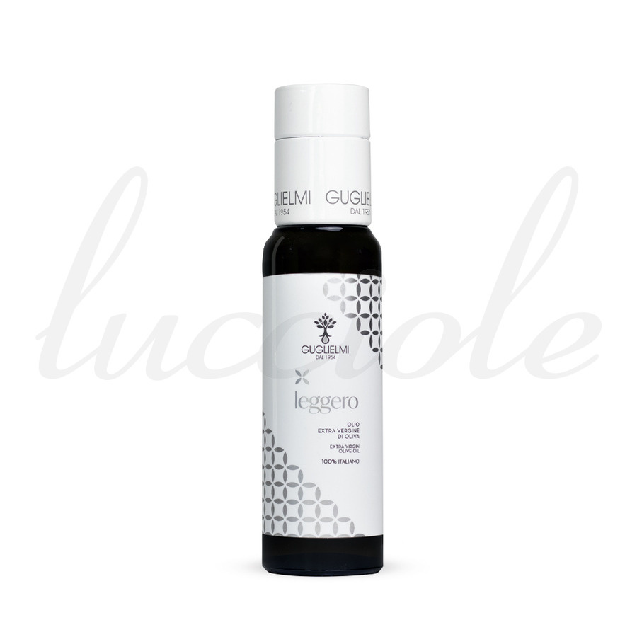 `Gulielmi Leggero`to najbardziej zbalansowany smak i jedwabistość uzyskana dzięki strukturze charakterystycznej dla oliwki Coratina z dodatkiem łagodnych odmian Peranzana oraz Leccino. Charakterystyczna szorstkość zastąpiona jest długo utrzymującą się słodyczą z delikatnie wyczuwalnymi nutami zielonego jabłka i bergamotki. Ta propozycja kierowana jest dla bardziej wrażliwego podniebienia, choć wiąż posiada swój charakter, szczególnie, kiedy spożywana jest w okresie paru pierwszych miesięcy od tłoczenia. Charakteryzuje się bardzo niską kwasowością na poziomie 0,2%, która nie zmienia się nawet po wielu miesiącach od wyciśnięcia owoców.