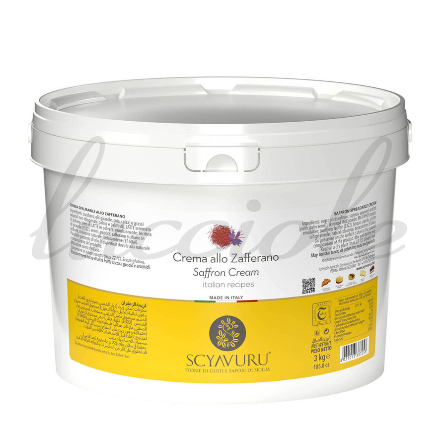 - Sycylijski krem o delikatnej konsystencji, jako masa do smarowania pieczywa lub naleśników, wypełnienie do wypieków, nadzienie do rogalików oraz wielu innych zastosowań. Produkt `Crema allo Zafferano` pochodzi od renomowanego producenta `Scyavuru`.
