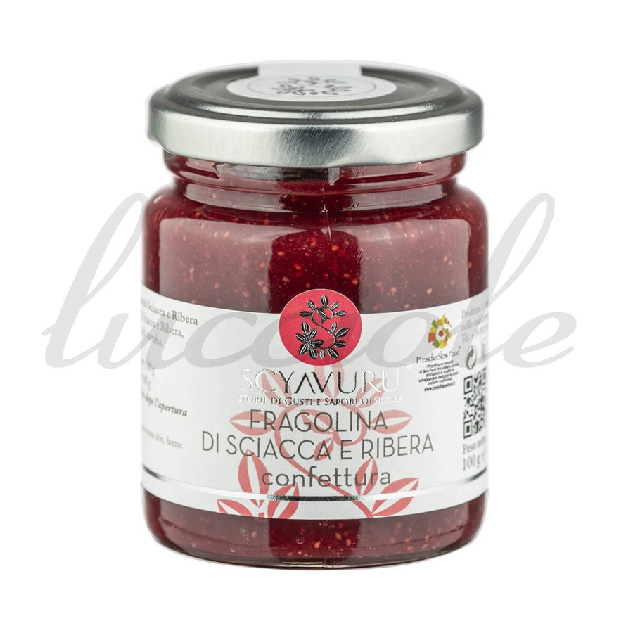 'Confettura Extra di Fragolina di Sciacca e Ribera` to doskonała konfitura pochodząca od renomowanego producenta Scyavuru na Sycylii. Kunszt rzemieślników oraz doskonałe owoce z przepełnionej letnim słońcem wyspy to gwarancja wybornego efektu. Konfitura z esencjonalnych owoców poziomki rosnącej nieopodal słynącej z nich miejscowości Sciacca obok Agrigento, przepełniona smakiem i bogactwem aromatów. Wspaniała rogalików Cornetti, francuskich naleśników, tostów, bułeczek Brioche, czy Croissantów. Uzależniająca jakość, nieodzowny element typowego włoskiego, no i polskiego śniadania. Polecamy również jako dodatek do serwowanej herbaty we francuskim stylu. A jeśli zwrócisz uwagę na przepiękną stylistykę opakowania, z pewnością zapragniesz wręczyć ją na prezent bliskiej osobie.