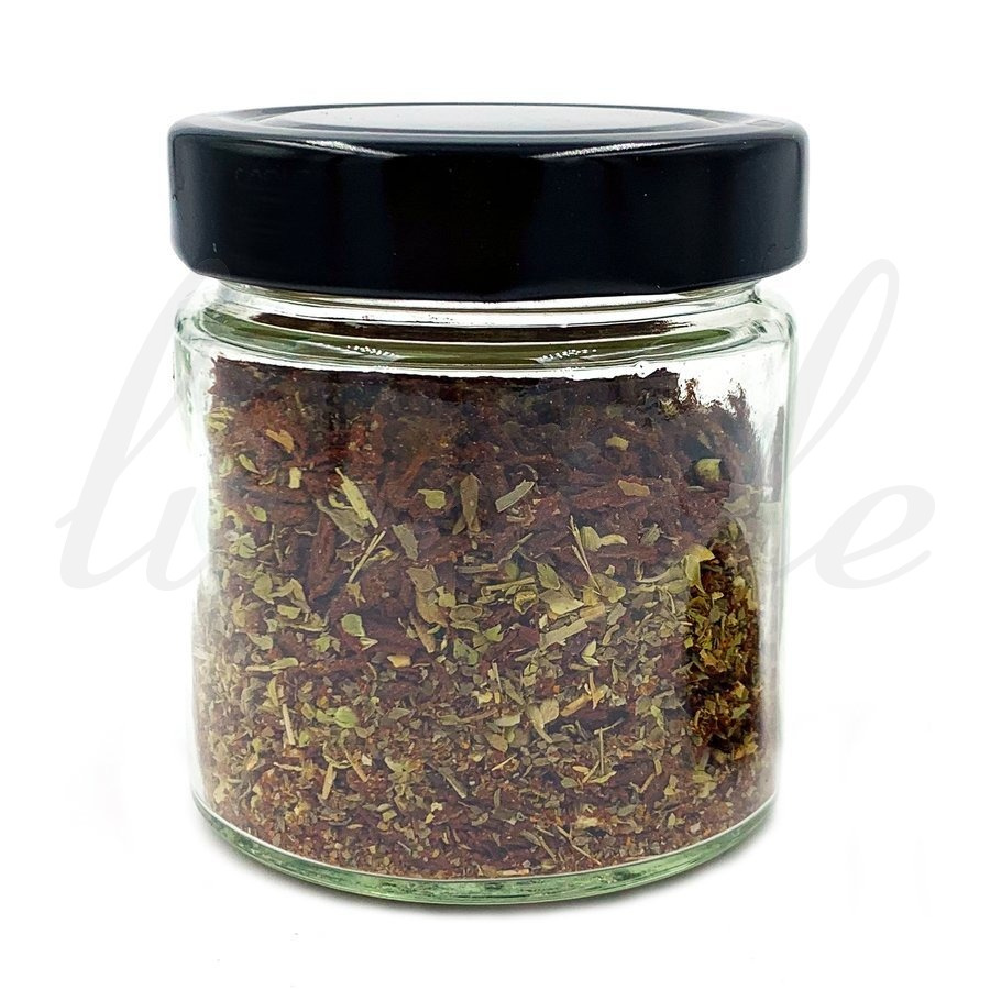 Doskonała kompozycja przypraw według domowej receptury, która doskonale spisze się do posypywania grzanek Bruschetta z białego lub ciemnego pieczywa, które przed zrumienieniem powinno być nasmarowane oliwą z oliwek. Dodatkowo kromki udekoruj pokrojonym pomidorem, bakłażanem, czy na przykład cukinią. Mieszanka również fanie wzbogaci smak oliwy Extra Vergine, po prostu namocz je przez moment w ciepłej wodzie, a następnie zmieszaj z Olio di Oliva. Tak samo polecamy do zmieszania z czystym jogurtem lub twarogiem. Skład: chipsy pomidorowe, granulki czosnku, bazylia, oregano, papryka, sól, pieprz, olej rzepakowy.