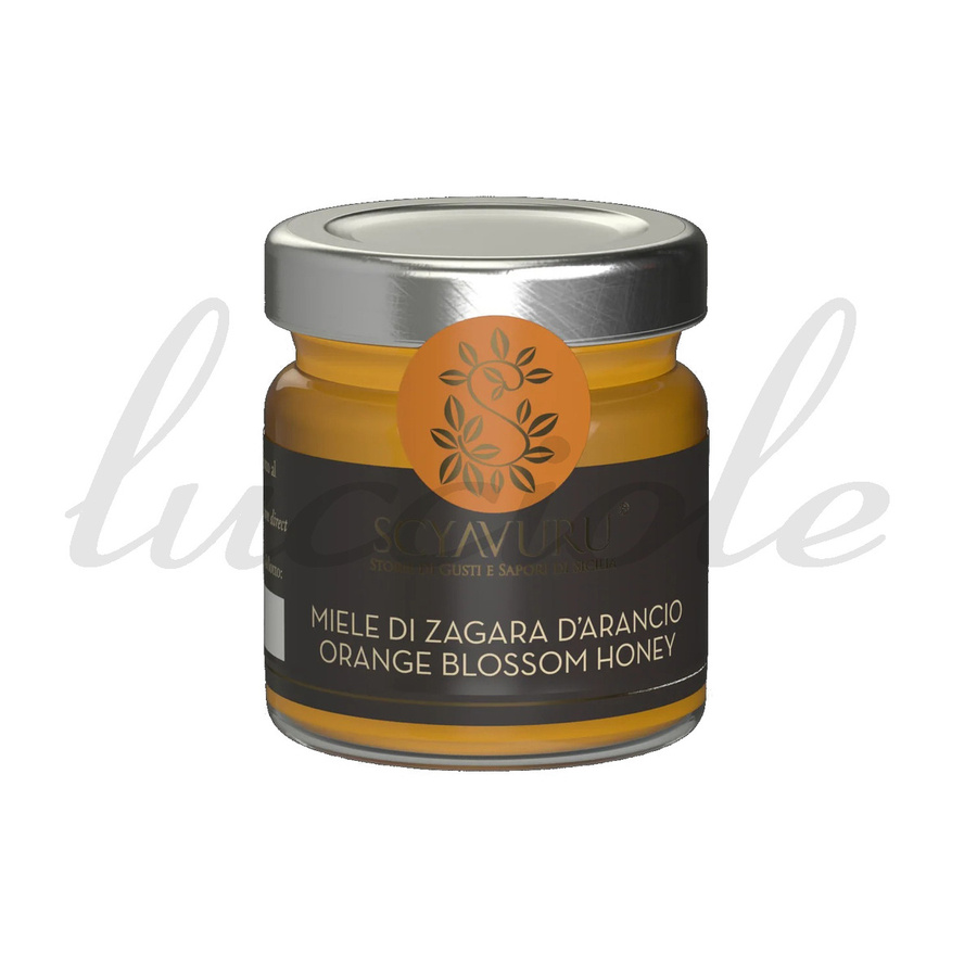 - Doskonałej jakości sycylijski miód z kwiatu pomarańczy w małym słoiczku, w sam raz jako dodatek do deski serów lub wędlin lub po prostu jako mały dodatek do śniadania.