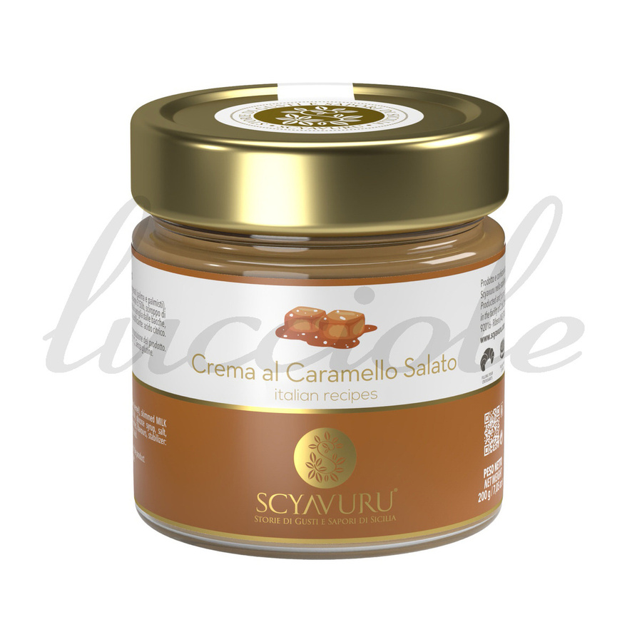• Sycylijski krem o delikatnej konsystencji, jako masa do smarowania pieczywa lub naleśników, wypełnienie do wypieków, nadzienie do rogalików oraz wielu innych zastosowań. Produkt `Crema al Caramello Salato` pochodzi od renomowanego producenta `Scyavuru`.